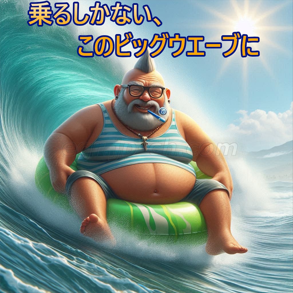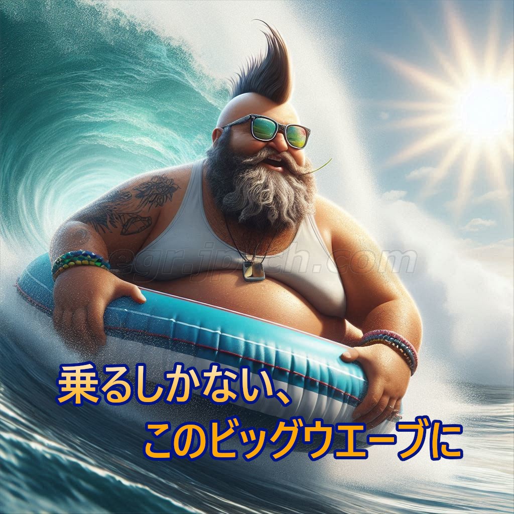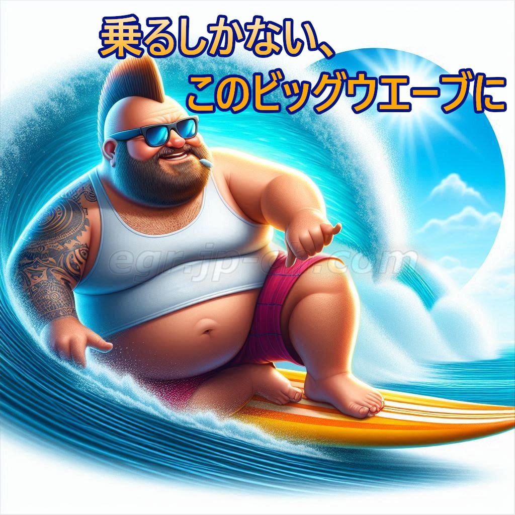 「乗るしかない、このビッグウェーブに」という言葉は、世間の大きな流行や動きに乗り遅れるわけにはいかない、参加するしかないという意味が込められています。新しいものが出た際に、それに乗り遅れずに参加する意欲の表れでもあります。